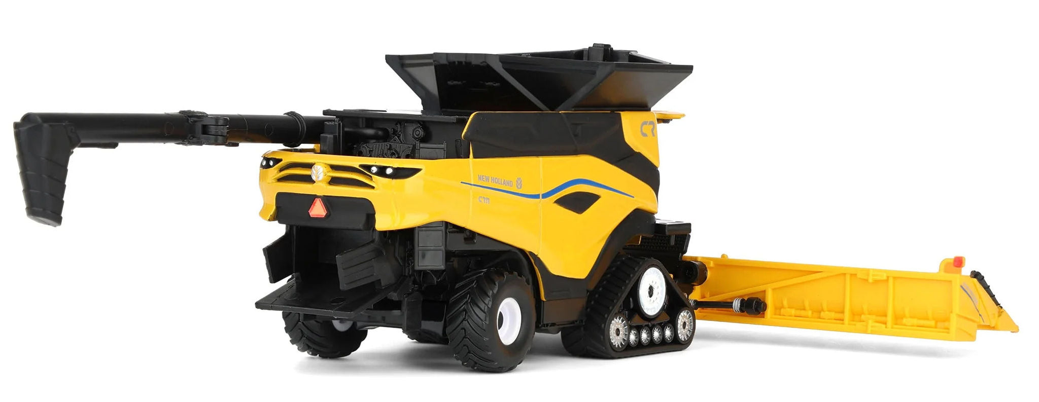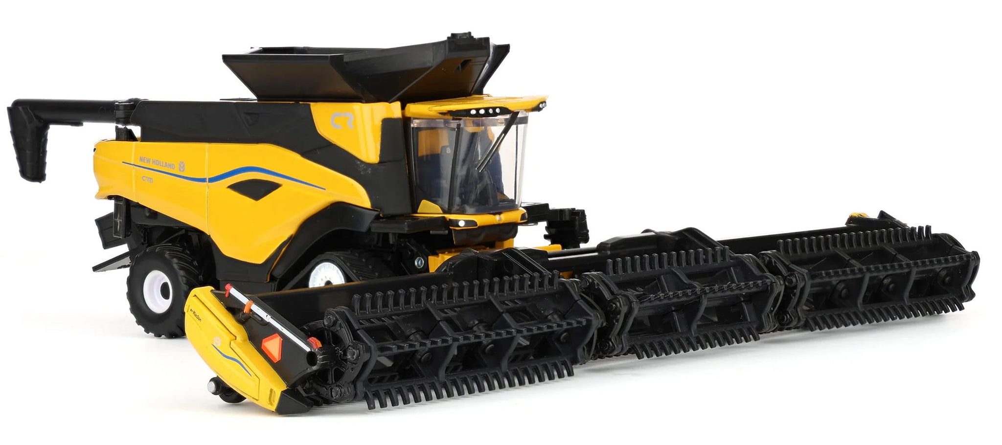 Stock #61001 - Die-cast metal with some small plastic detail parts, rubber front tracks, rubber single rear tires, folding unloading auger, movable feeder housing. Includes interchangeable plastic 16-row corn head (7½" W) and draper head (10" W). Made by Ertl, 6½" L x 3¼" H x 3¼" W, for ages 3 & up.