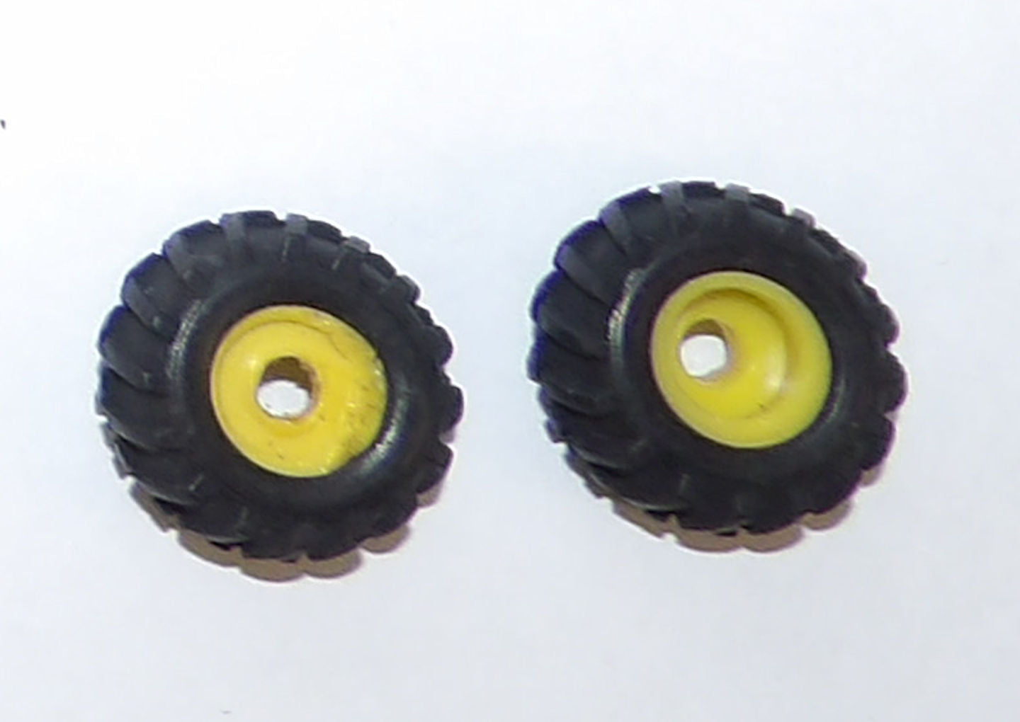 - 1 pair rubber tires with plastic rims, 5/8" round x 1/4" wide, 1/8" axle hole.