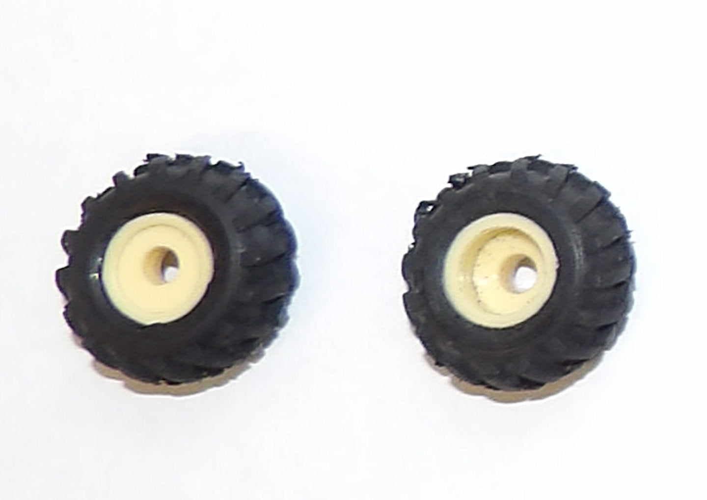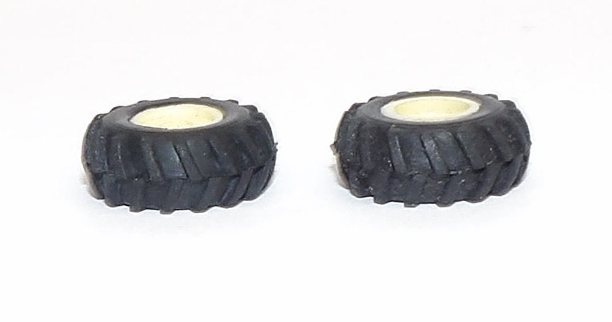 - 1 pair rubber tires with plastic rims, 5/8" round x 1/4" wide, 1/8" axle hole.
