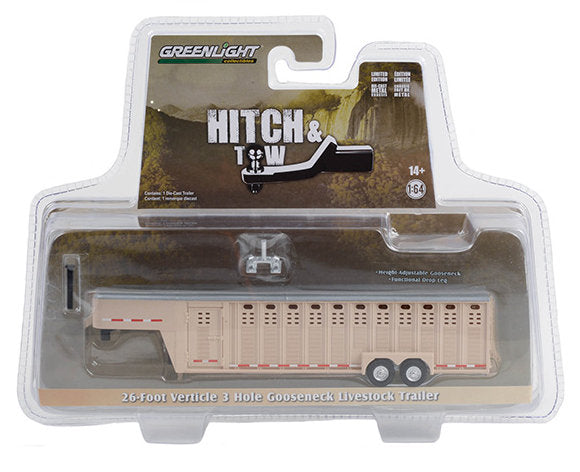 #30420 1/64 Beige 26-Foot Vertical Three Hole Gooseneck Livestock Trailer