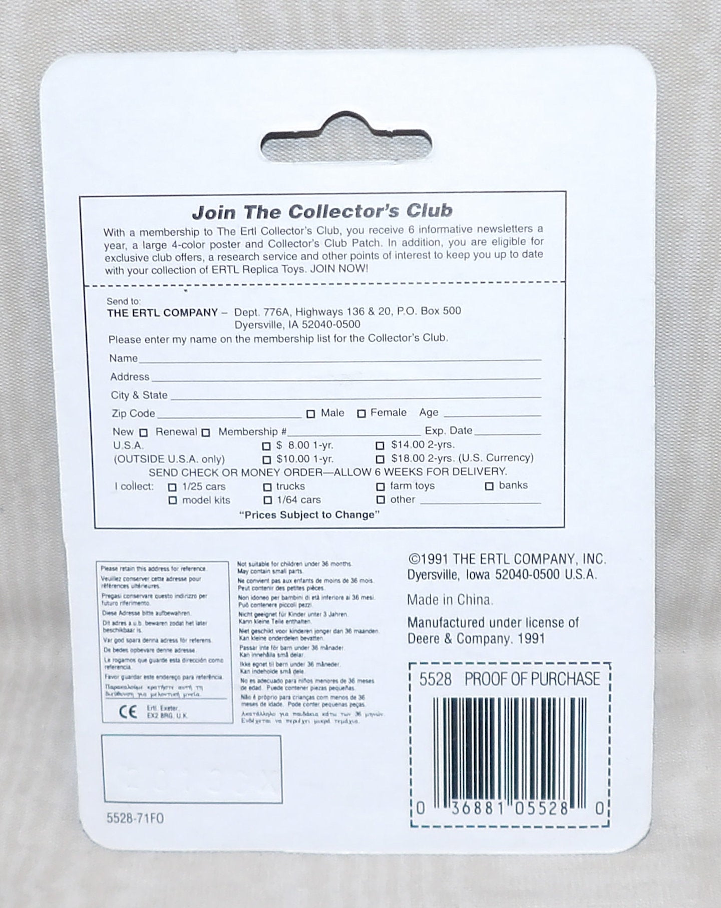 Stock #5528FO - die-cast metal with plastic tires and discs. Made in 1993 by Ertl, new in the package, 2½" L x 2¾" W x 1" H, for ages 3 & up. Vintage, older out of production toy. AS IS