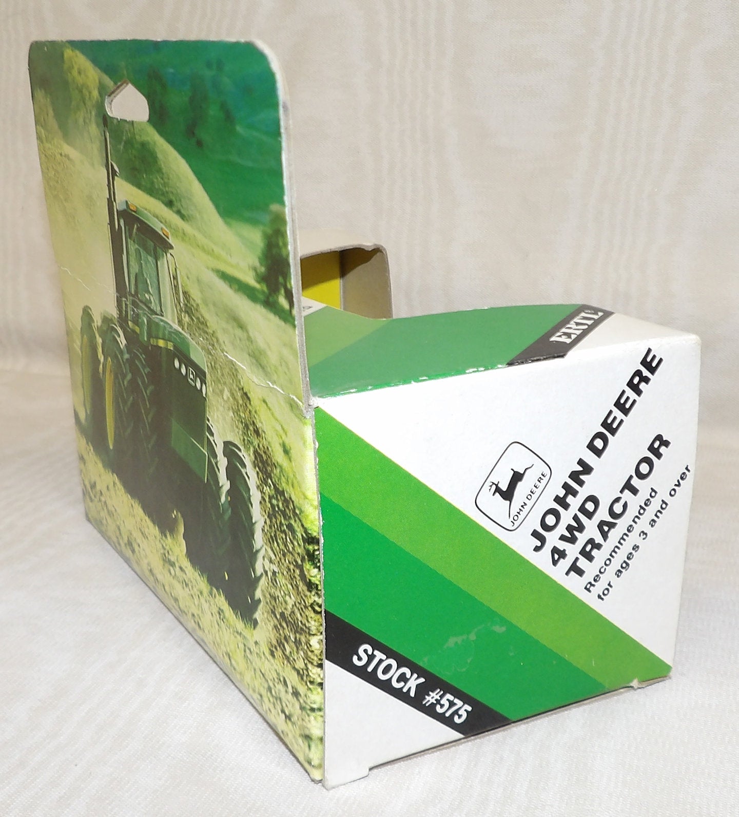 Stock #575NB - dark green paint scheme, die-cast metal with dual plastic tires and rims, articulated steering, no cab windows, standard hole-style hitch. New in the box, box is in very good condition. Made in 1989 by Ertl, 3½" L x 2" H x 2¼" W, for ages 3 & up. Vintage, older out of production toy. AS IS.