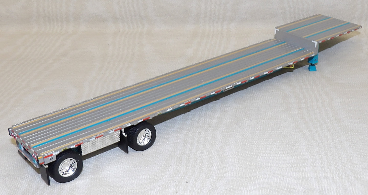 Stock #621272 - diecast metal with rubber tires and adjustable trailer stands. Made by DCP by First Gear, 10" L x 1" H x 1 5/8" W, for ages 14 & up. No Box. Not designed or recommended for child's play.
